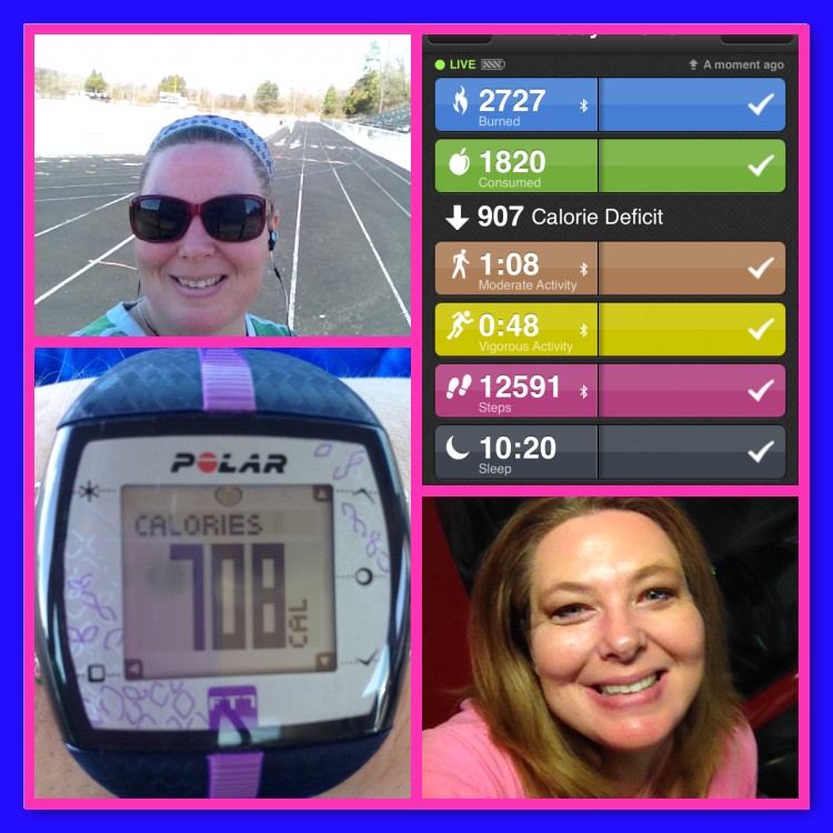 Today started off like most Saturday morning, sipping coffee and browsing the internet. My dogs just had to interrupt my lazy morning by wanting to go outside, so I obeyed like a good human should and took them out. Much to my surprise it had gotten a lot warmer outside and was turning in to be a beautiful day. I knew I had a choice to make, go back inside and continue my internet browsing and waste this beautiful day or go work out. The weekends can sometimes be my downfall because I don’t get my usual steps in from being at work, and if I miss working out, that means either I eat not much of anything, or eat way beyond my calories for the day. I am happy to say that I made the right choice and went to work out. I usually will do Zumba World Party on my Wii or go to the gym to walk on the treadmill and use the elliptical, but I made a different choice today. Being that it was so nice outside, I decided to give the high school running track a try. I pushed myself hard today because I knew without having the treadmill threatening to throw me off for not keeping up the speed, I would drag ass around the track and not burn enough calories. I wasn’t sure what the day would hold for me and since my husband and I usually go out to dinner on Saturdays, I wanted make sure I burned enough calories so I could enjoy the day. Yes, I work out to not only to get healthy and lose weight, but to be able to eat more. Each time around the track I would jog half and walk half, then near the end of my time (1:15) I decided to run up and down the bleachers like I used to when I trained for a half marathon. I ended up burning 708 calories during my workout and was proud of myself for pushing so hard. Working out makes me feel so much better about myself, and life in general.