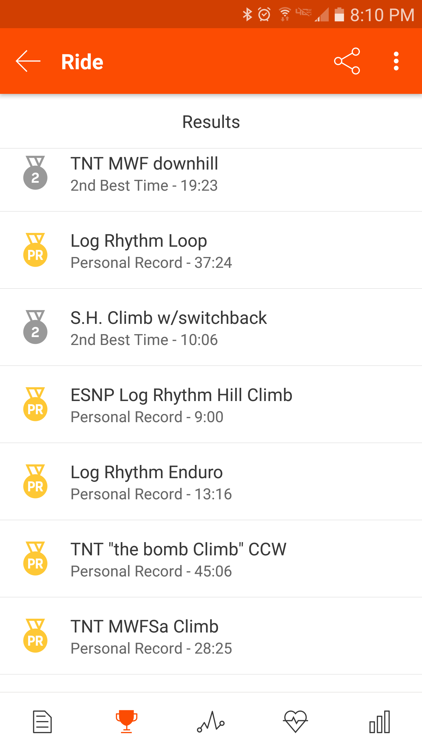 I am so excited about today’s ride! I finally rode the hardest trail for the first time this year. I rode it a few times last year, but wanted to get stronger in my legs before trying it again this year, because it starts off on steep climb that feels like it goes on forever! I believe it is about 1/4 of a mile for the climb. Needless to say, I have come a long way from last year to today. I beat some more personal records today, and was able to ride the Log Rhythm and the TNT trail back to back, the two hardest trails at Enterprise Nature Park. I never in a million years thought I would go mountain biking, much less start it when I am 44 years old! I love the thrill and the challenge that it gives me. What an awesome feeling!